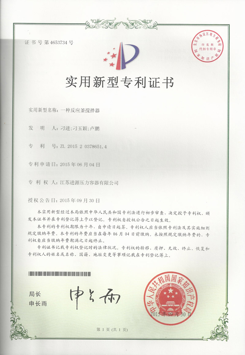 您現(xiàn)在的位置: 江蘇進(jìn)源壓力容器有限公司 >> 技術(shù)專(zhuān)利