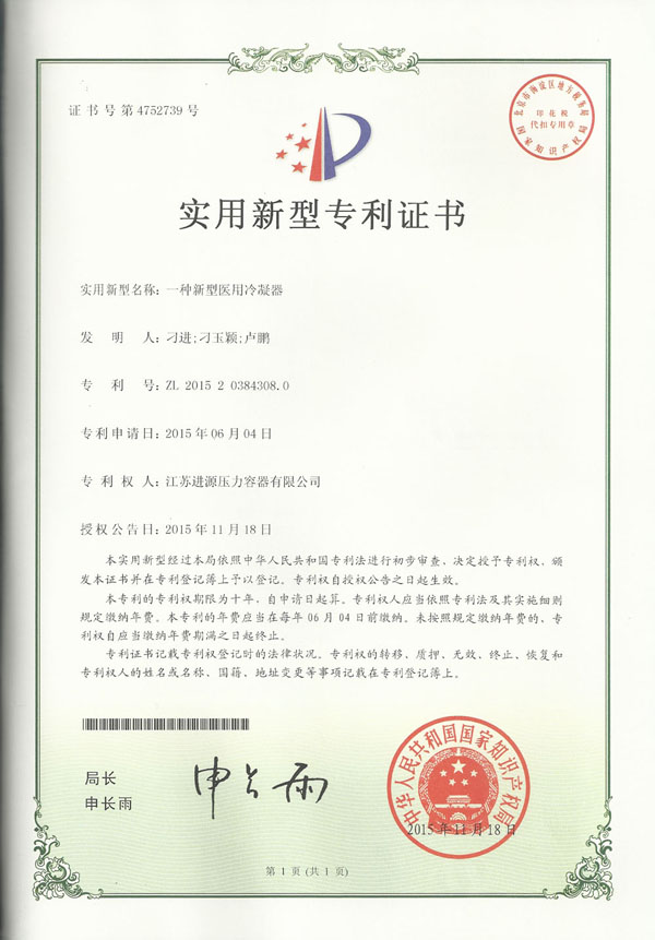 新型醫(yī)用冷凝器專利